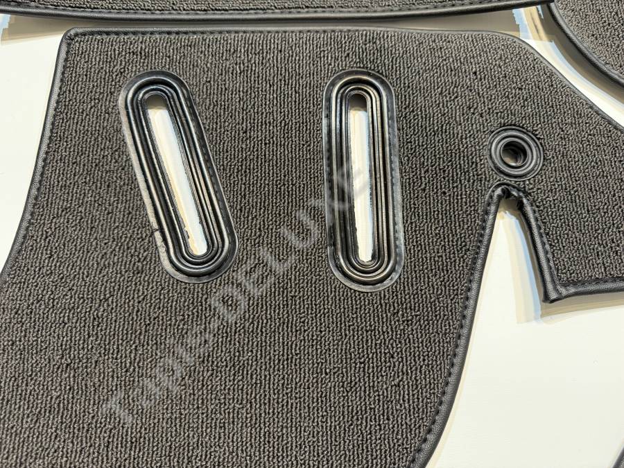 Die unterschiedliche Dicke verwendeter Dämm-Materialien kann die Passung der Teppiche beeinflussen. Wir haben uns bemüht, die Teppiche im Detail so zu gestalten, dass diese sowohl zu dickeren wie auch zu dünneren Dämmungen zwischen Teppich und Bodenblech kompatibel sind.